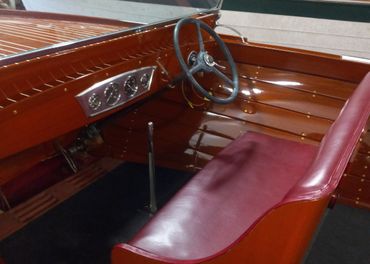 All-original boat ordered directly from Chris Craft in 1938 and has always been a Lake George boat. Full strip job interior, exterior, bottom. New upholstery, and all-new stain varnish. 2 coats of copper bronze bottom paint, and white water line. Burgundy seating/upholstery