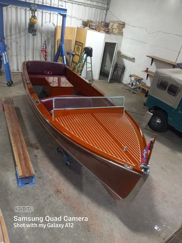 Comments: Boat is equipped with rear steering. Single plank boat, 1 of 3 made with that option. New subfloor with vinyl rubber mat flooring. New wiring, electrical converted from 6v to 12v. Bilge, 2 coats of C.P.E.S. bottom transom plank has been replaced.