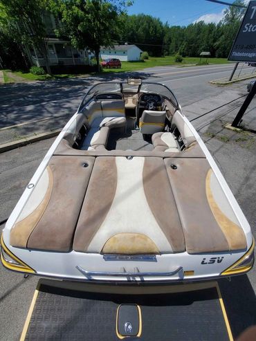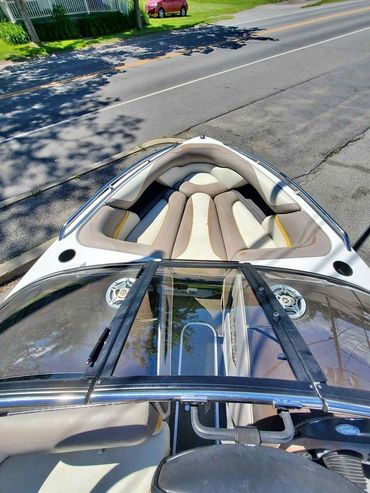Stereo, Speakers, bilge storage, engine storage, skiing capabilities, split front window, cover, 340 engine, gasoline, Fully serviced! matching dual-axle trailer, inboard direct drive system.